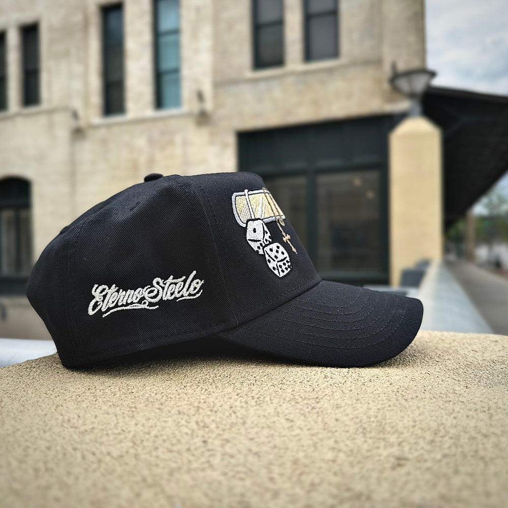 A high profile two-tone cap built on a structured silhouette, finished with custom EternoSteelo embroidery.