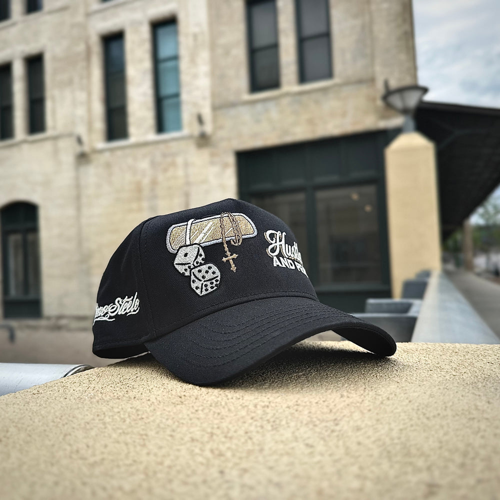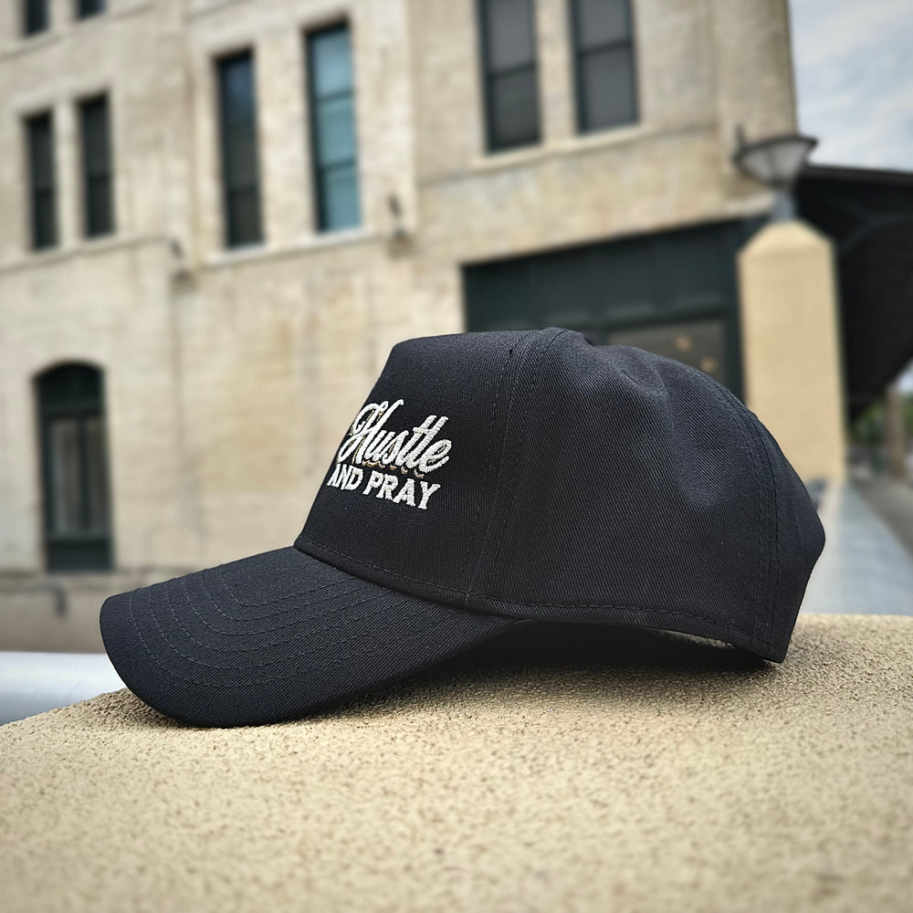Designed with a clean contrast dome and curved peak, this piece blends everyday wearability with meaning. The “Hustle & Pray” message represents the balance between putting in the work and staying grounded, faith and grind, side by side.